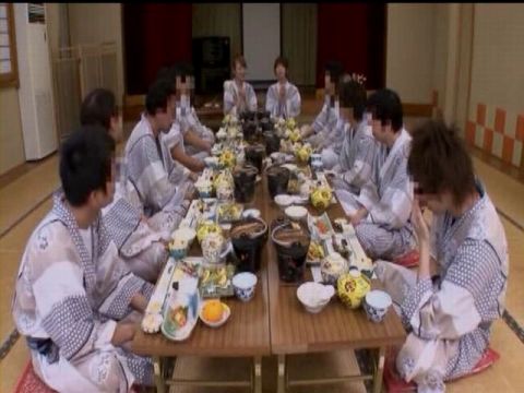 ミュウがもう2人の男を勃起させて待っていたけど、あえなく時間終了。するとミュウが「あと5分くらい時間あるんで…」と言い残してその男2人とまりかを残して宴会場へ去って行く。その残った男2人が欲情しちゃってガサツにまりかにキスをしたりフェラさせたりオッパイを舐めたりするシーンでフェードアウト。ここの男2人がなんかリアルでエロい。